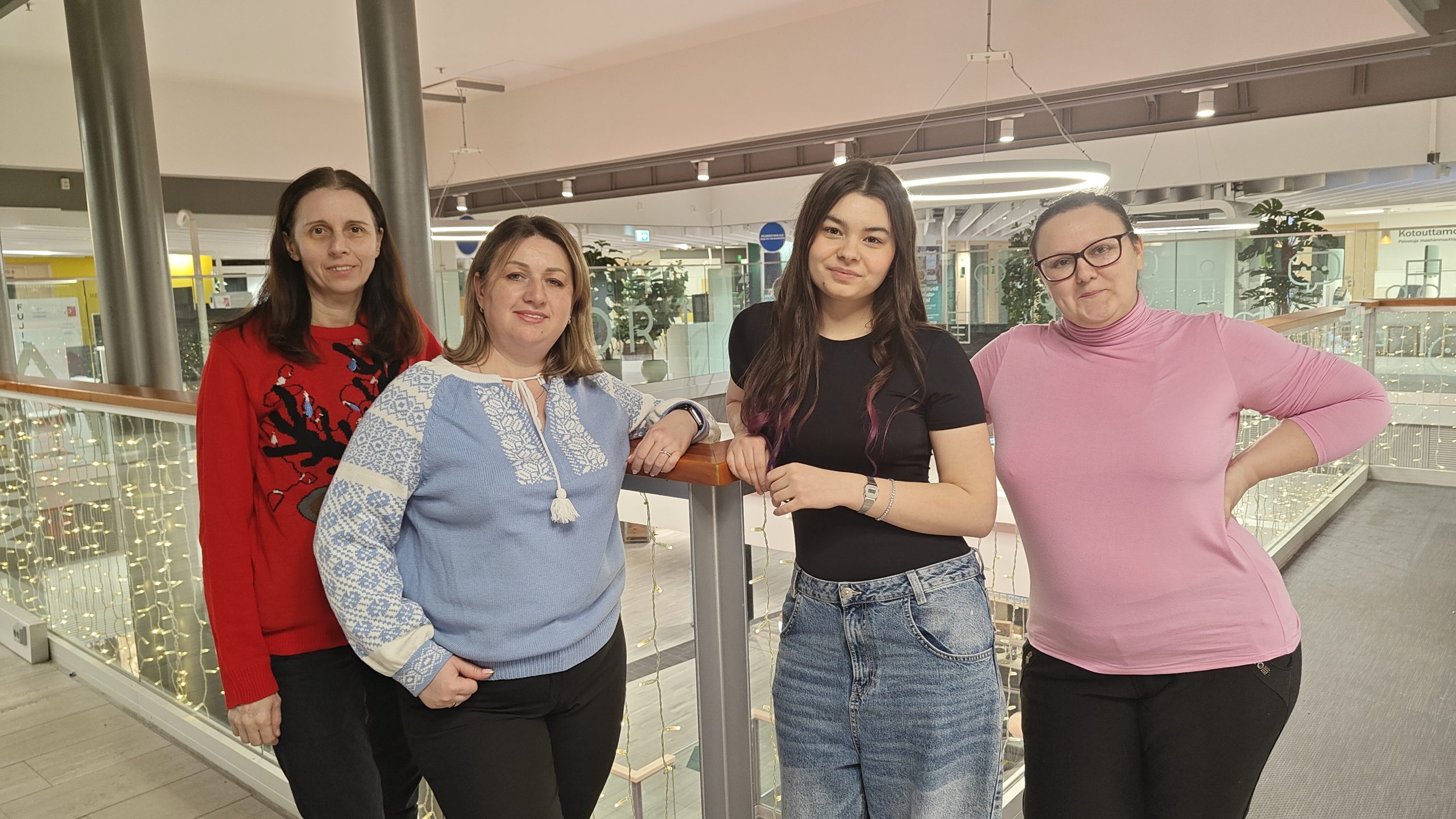 Ukrainalaiset Tamara Babaskina, Romanna Prus, Daria Momot ja Natalia Zauholnykova ovat järjestämässä Ristinkirkkoon Joulu yhdessä -tapahtumaa 27.12.